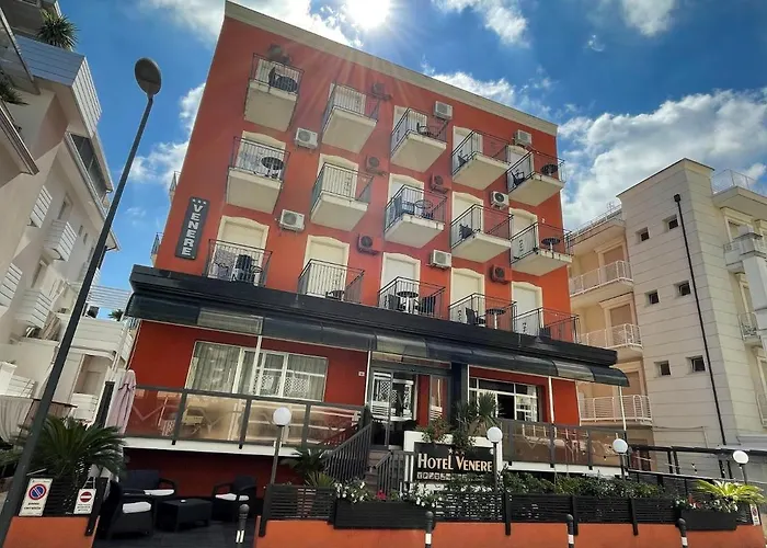 Det 3-stjärniga Hotel Venere Rimini ligger 900 m från Lago Bernardo. Det har soldäck och solterrass. Det här hotellet, som finns inom några kvarter från Miramare di Rimini, har värdeskåp och 24-timmars säkerhet.